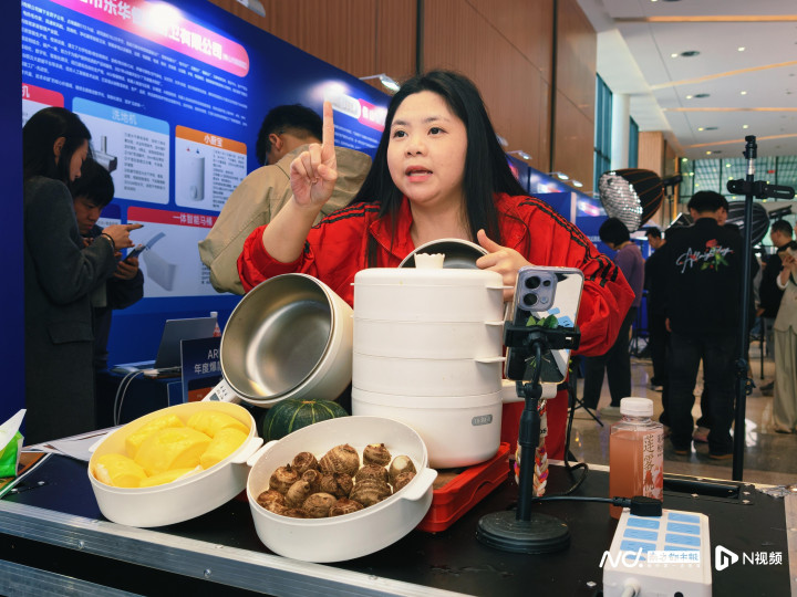 达人主播在“广货行天下”活动现场为广东家电带货直播。