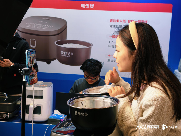 而在另一广东老牌家电格兰仕的展厅,带货达人则现场制作“航天员同款”无油鸡胸肉,强调空气炸功能如何替代传统油炸:“航天员在太空不能有明火,我们用微波+空气炸模拟零重力烹饪!”